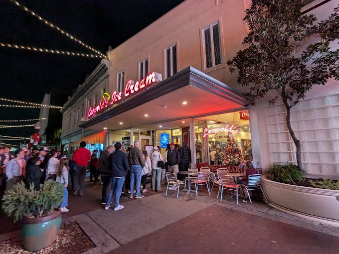 The next stop was Leopold’s Ice Cream. It was originally located on Gwinnett before moving downtown to Broughton Street. The three Leopold brothers, immigrants from Greece, started the vintage parlor in 1919, and today, it remains one of the most popular destinations in Savannah. The brothers have kept their formulas secret, but don’t mind letting you know they use only real, natural ingredients. Each batch is made on-site with the very best. We loved how the ice cream servers cheerfully helped us taste the many flavors.