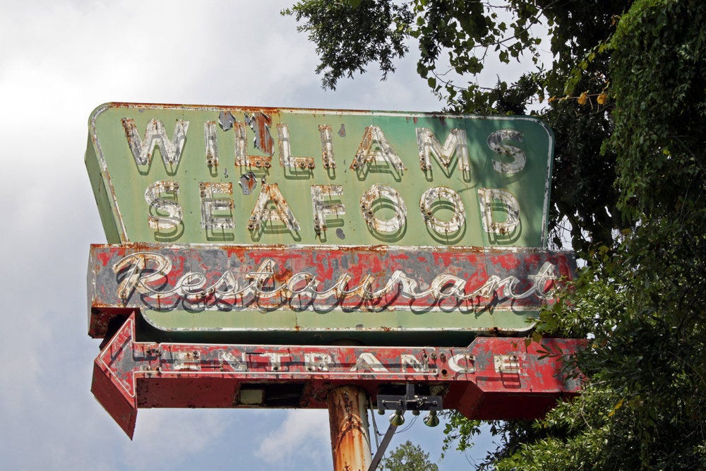 In 1936, Williams Seafood opened as a roadside stand. Three generations of Williamses ran the place, “a fixture in this community,” people say, until its demise by arson, also in 2004. Its mid-century competitors, like Frank Paris, Allie’s Wharf (with a sign that read "Where the elite eat in their bare feet"), and Tassie’s Pier, were all long closed when Williams burned to the ground.