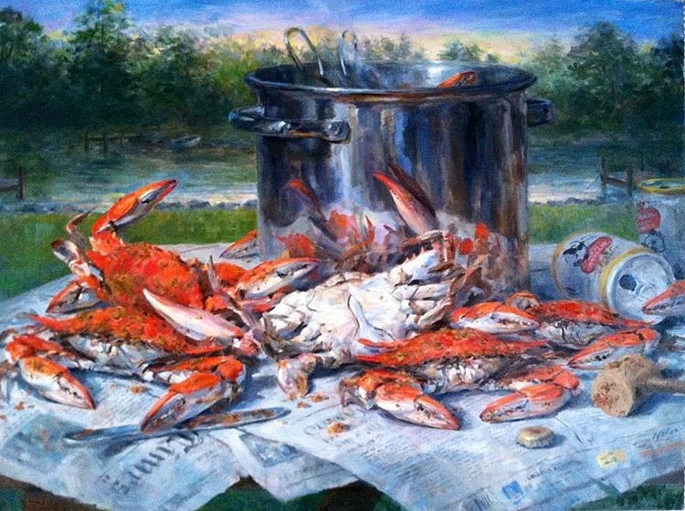 Our coastlines are dominated by vast salt marshes and dense stands of smooth cordgrass and oyster reefs drenched twice daily by tides up to 8 feet. It’s the perfect habitat for blue crab, which hide in the grass feeding on oysters, clams, and snails - anything they can get their vicious claws on. Sometimes you’ll hardly notice them because they burrow into the mud with only their eyes visible as they lie in wait for a passing meal. If they’re not careful, they can become a meal themselves for birds and fish or be caught by crabbers like Gibbes.