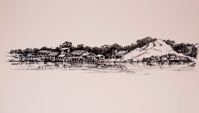 The big white mountain was entirely made of oyster shells, bleached white, coming and going as the seasons cycled, rising and falling with the tide.